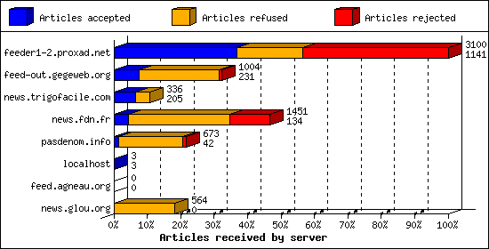 | 1 | feeder1-2.proxad.net | 288 | 3100 | 1141 | 608 | 1351 | 36% | 23:46:33 |