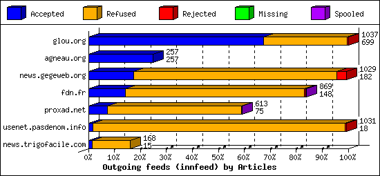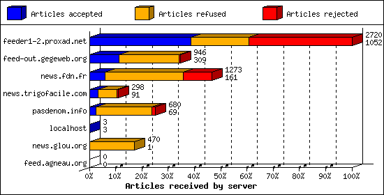 | 1 | feeder1-2.proxad.net | 288 | 2720 | 1052 | 600 | 1068 | 38% | 23:45:30 |